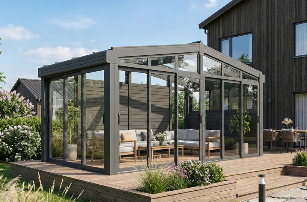 Med en kombination av oisolerade aluminiumprofiler 20mm dubbel-härdat isolerglas med energibeläggning och argongasfyllning, får du ett glasparti som är både hållbart och energieffektivt. Den här lösningen är perfekt för uterum och vinterträdgårdar där du vill förlänga säsongen och skapa en plats för avkoppling eller sociala stunder.