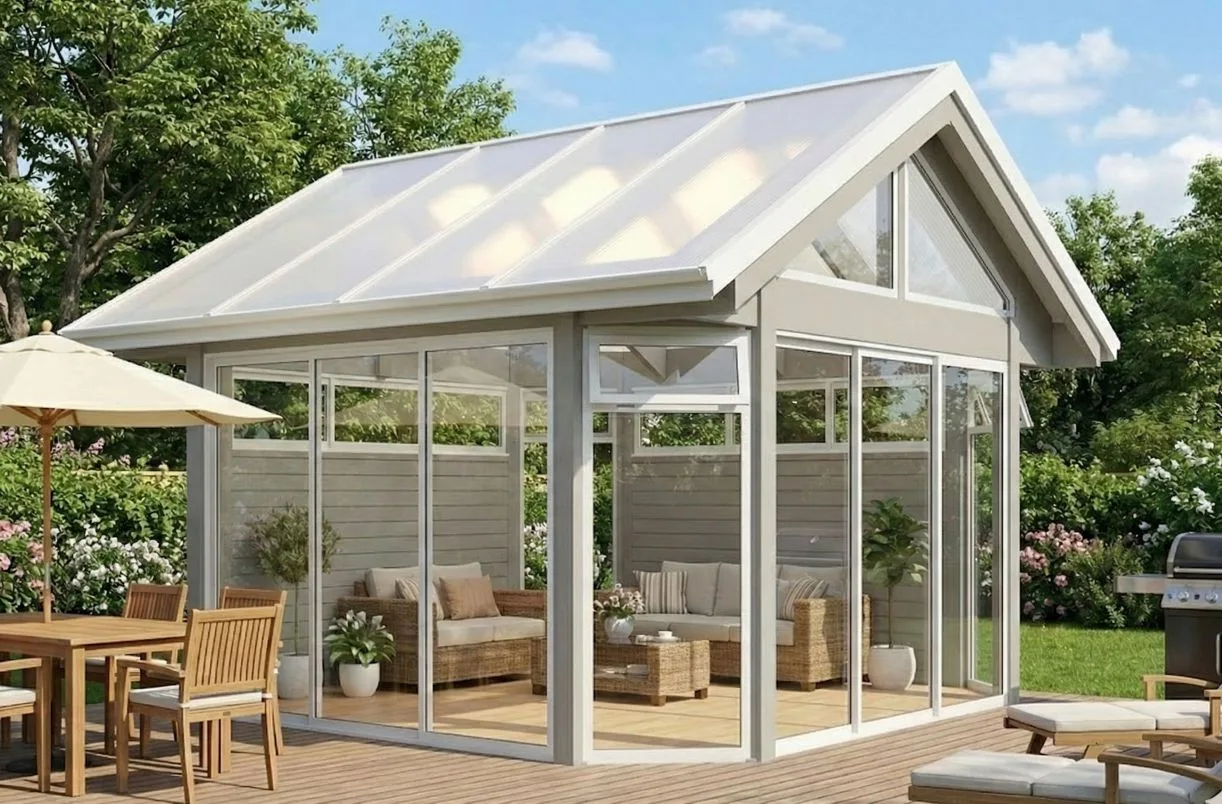 De opalvita kanalplastskivorna sprider ett mjukt och behagligt ljus i ditt uterum, utan irriterande reflektioner. Detta gör dem till ett av våra mest populära takval för en trivsam och ljus atmosfär.