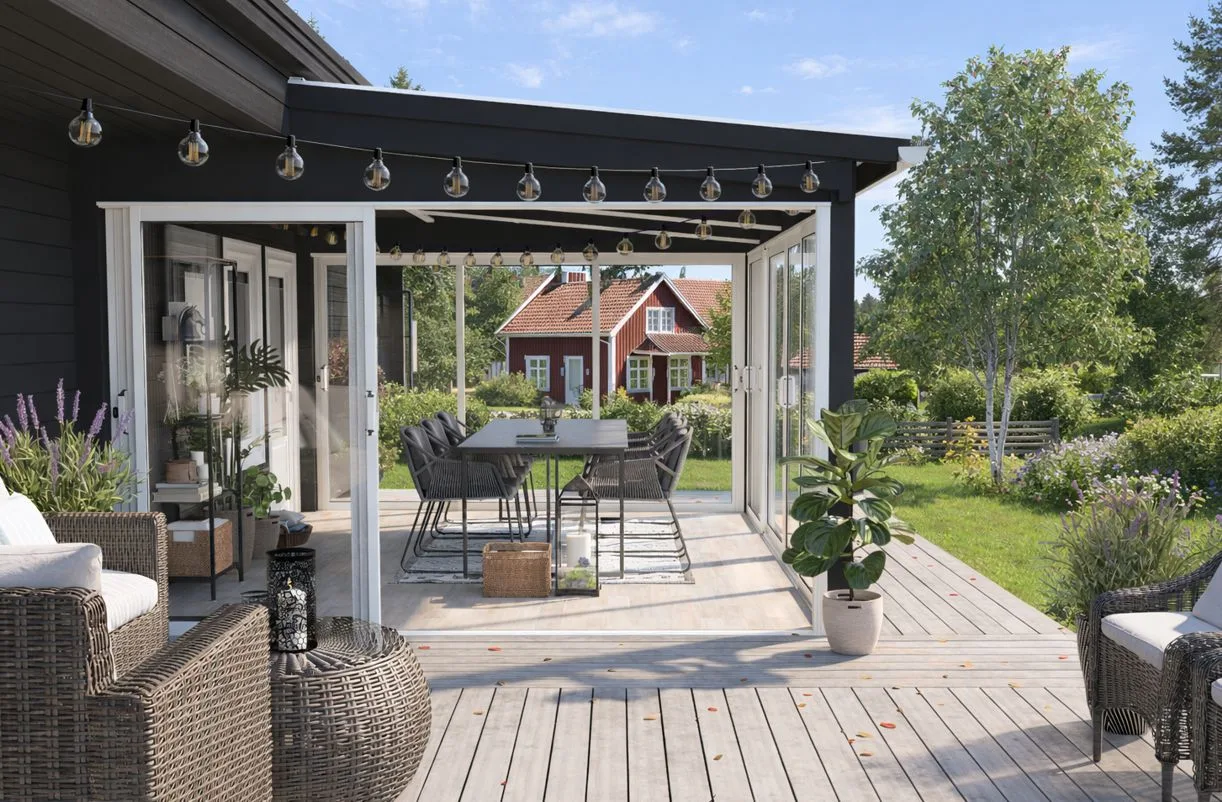 Twin-serien är det naturliga valet för inglasningar som både skyddar och förskönar. För en extra lyxig känsla, kombinera glaspartierna med klinkergolv och golvvärme – en lösning som gör ditt uterum lika bekvämt som inbjudande, även under kyliga dagar.